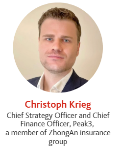 Christoph Krieg is the Chief Strategy Officer of Peak3, a global provider of software and AI solutions for the insurance sector. Based in Hong Kong, Christoph oversees strategy and proposition innovation for Peak3, with a focus on bringing technology and business model innovation from East Asia to other regions across the globe.