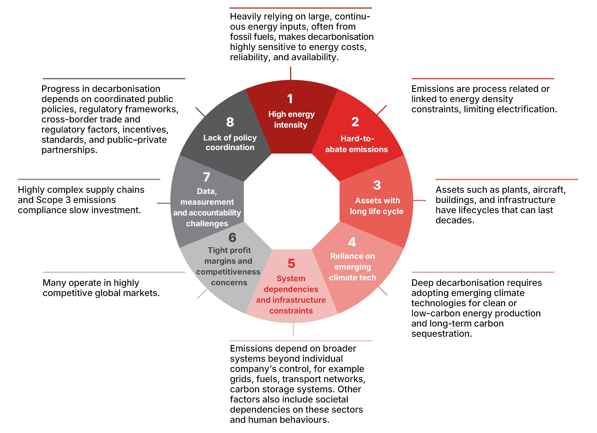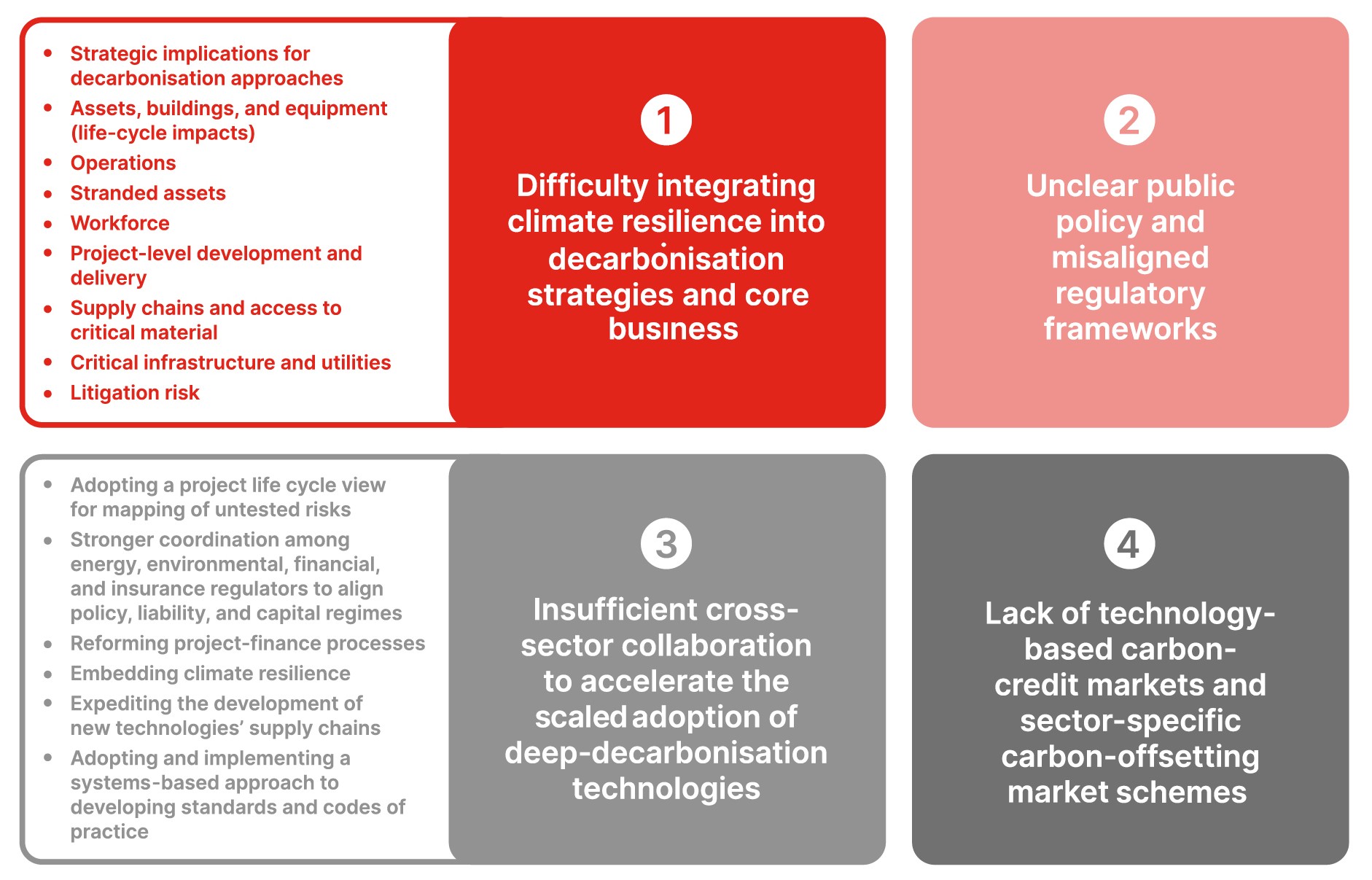 Across sectors, four structural challenges are constraining the pace and scale of decarbonisation.